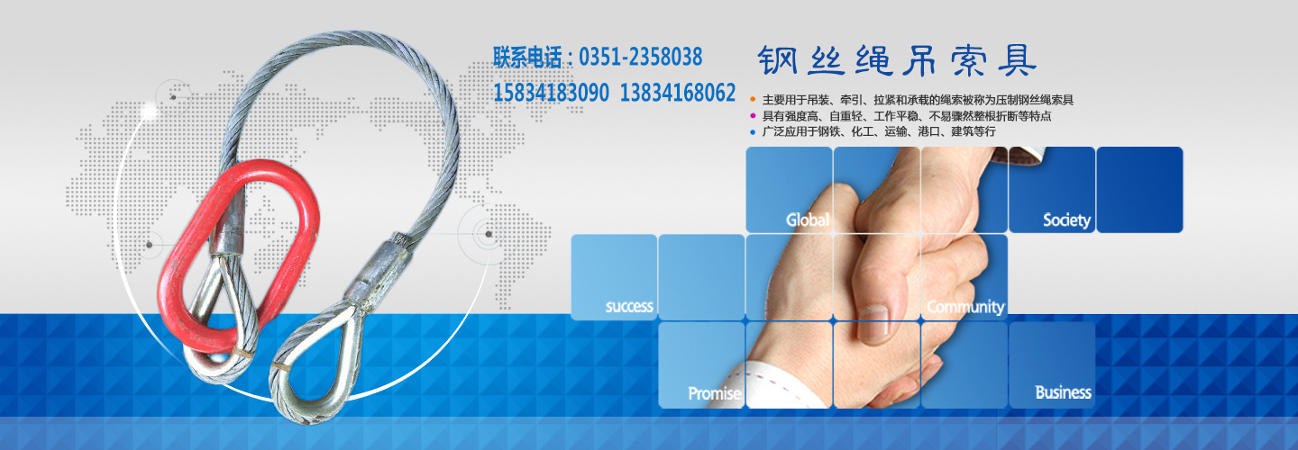 山西睿恩起重機械設備有限公司是一家集專業銷售鋼絲繩、吊裝鋼絲繩,塔吊鋼絲繩,旋挖機鋼絲繩,電梯鋼絲繩,鍍鋅鋼絲繩,涂塑鋼絲繩、鋼絲繩繩套,鋼絲繩手拉葫蘆,電動葫蘆,電動提升機,液壓千斤頂,滑輪及機械配套件等,綜合為一條龍服務的專業銷售維護服務中心。我們能根據客戶不同的廠房設計、不同的物料輸送及控制方要求,以及鋼絲繩的要求,為您提供各種更多的選擇,嚴格按照各項操作和環境要求為您量身定制,將為您帶來更方便更經濟更滿意的回報。 我們秉承“專業、誠信、靈活”的理念服務廣大客戶,致力完善各種類型的起重機械以滿足不同領域的客戶需求。本著“為顧客著想,解顧客之憂”的服務精神,始終堅持“用戶至上”的服務宗旨,在市場中不斷發展壯大。我們會從您的角度為您考慮到每一個細小的環節,滿足您的需要。讓您真正感受到務(服務)超所值。在同行業中樹立良好形象,給您留下深刻的美好印象。